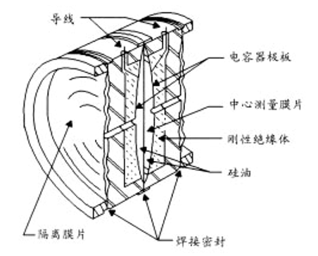 電容式壓力變送器:其測量膜片與兩側(cè)固定電極各形成一個電容器,膜片微小的位移導(dǎo)致兩極板間的距離改變,從而引起電容量發(fā)生變化。