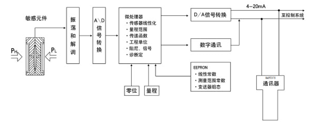 壓力變送器的測量原理告訴我們其測量壓力的過程主要包括被測量介質(zhì)壓力的傳遞感知、微處理器的信號轉(zhuǎn)換及信號輸出這三個過程,下面簡單介紹一下。