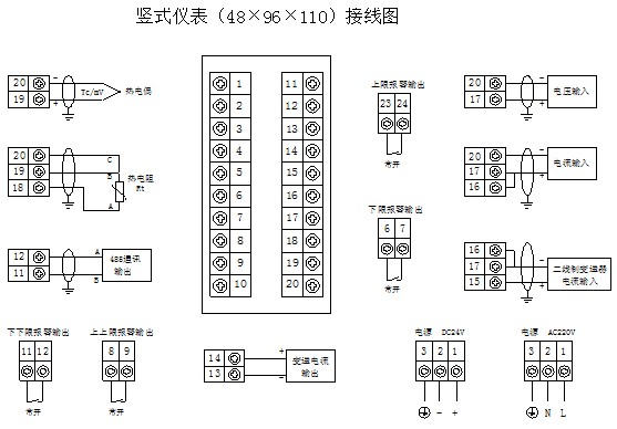 六、智能顯示調(diào)節(jié)儀的安裝接線圖: