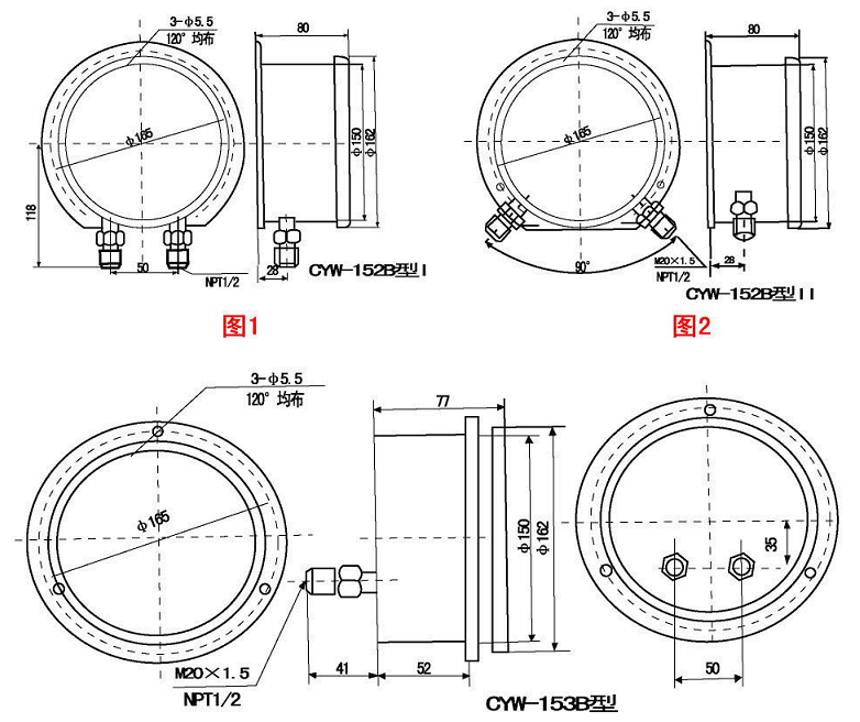 1、不銹鋼差壓表表盤直徑:φ100mm;φ150mm