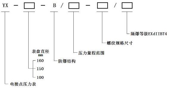 YX-160B(150B 100B)防爆電接點(diǎn)壓力表由隔爆外殼、測量系統(tǒng)、電接點(diǎn)組、調(diào)節(jié)裝置和出線盒等組成。防爆電接點(diǎn)壓力表的隔爆外殼具有良好的隔爆性能,因此防爆電接點(diǎn)壓力表對(duì)在正常工作過程中由于火花或電弧的影響,除了能承受殼體內(nèi)部的爆炸性氣體混合物在一旦引起爆炸時(shí)產(chǎn)生的爆炸壓力外,并能有效地阻止由此產(chǎn)生的熱能向外順利傳播,而只能在殼體內(nèi)部沿著隔爆接合面的微小縫隙處緩慢地向外擴(kuò)散。這時(shí),傳至殼體外部的瞬間溫度已降低到爆炸性氣體混合物的燃點(diǎn)溫度以下,故不會(huì)導(dǎo)致傳爆。